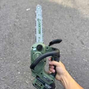 Máy được thiết kế tay cầm giống như cưa xăng, mang lại cảm giác thoải mái khi sử dụng, hỗ trợ cưa cây đứng và cây nằm