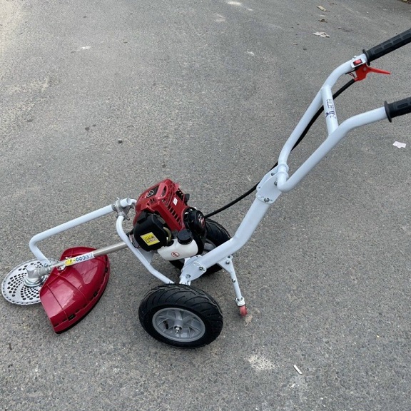 Thiết kế có tăng đơ dễ dàng điều chỉnh độ cao thấp máy tương thích với người sử dụng. Cản cỏ dày tốt. Bánh xe bơm hơi. Lưỡi cắt cỏ tròn 40 răng. Chân chống có lò xo tiện dụng.