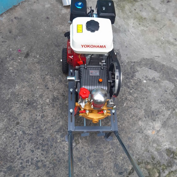 Bộ gồm: động cơ, đầu phun, dây hút, dây xả, lọc rác. Tất cả ráp hoàn thiện trên khung  có bánh xe như hình